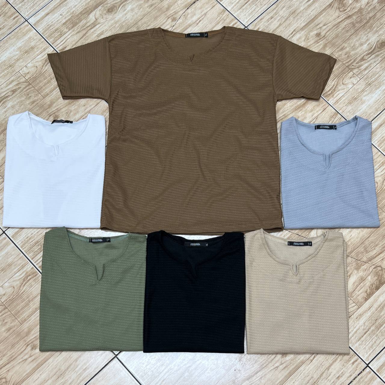 تیشرت پنبه سوپر گرم بالا یقه کشباف سر آستین ساده (پک ۲۰ عددی)
