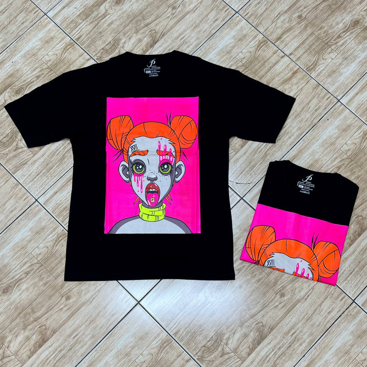 تیشرت لش چاپ فلور بلک لایت پنبه سوپر نخ ۲۶ گرم بالا (پک ۴ عددی)